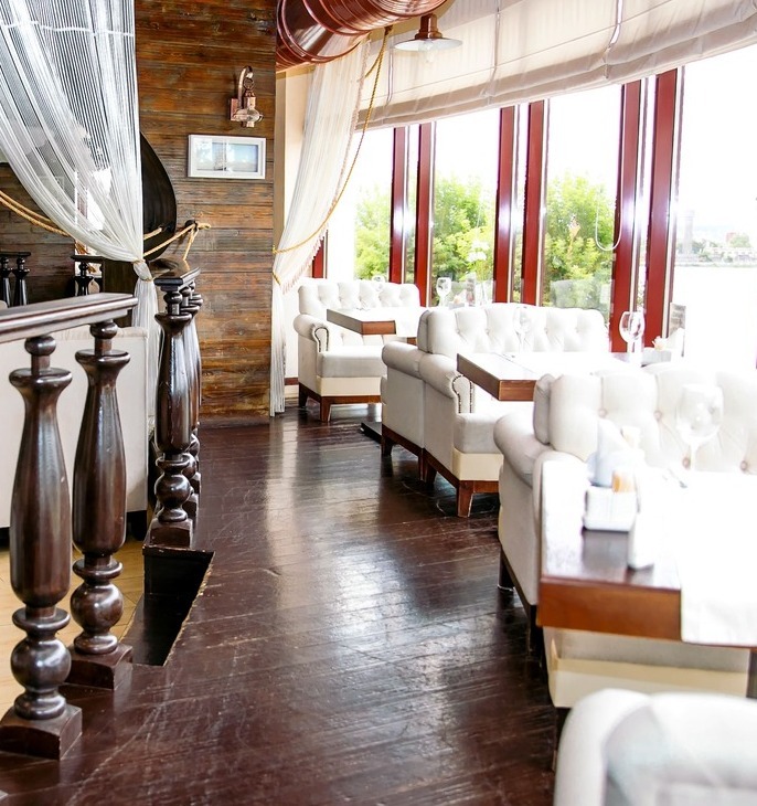На борту нашего кафе 2 просторных этажа-палубы, где можно организовать мероприятия на любой вкус. По пятницам и субботам звучит живая музыка и проходят дискотеки. В будни у нас можно провести деловые встречи, устроить романтический ужин или просто насладиться отдыхом в уютной атмосфере.